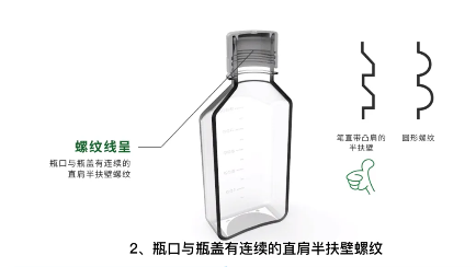 ◆無襯里瓶蓋,雙層密封防漏設計,瓶口與瓶蓋有連續(xù)的直肩半扶壁螺紋,瓶蓋與瓶身完美貼合