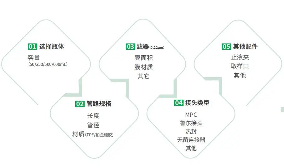●材質(zhì):瓶身聚丙烯(PP),瓶蓋高密度聚乙烯(HDPE),內(nèi)管聚四氟乙烯(PTFE),外管(TPE),MLL接頭聚丙烯(PP),過濾器外殼聚丙烯(PP),過濾器濾膜四氟乙烯(PTFE),均符合USP Class VI標(biāo)準(zhǔn)