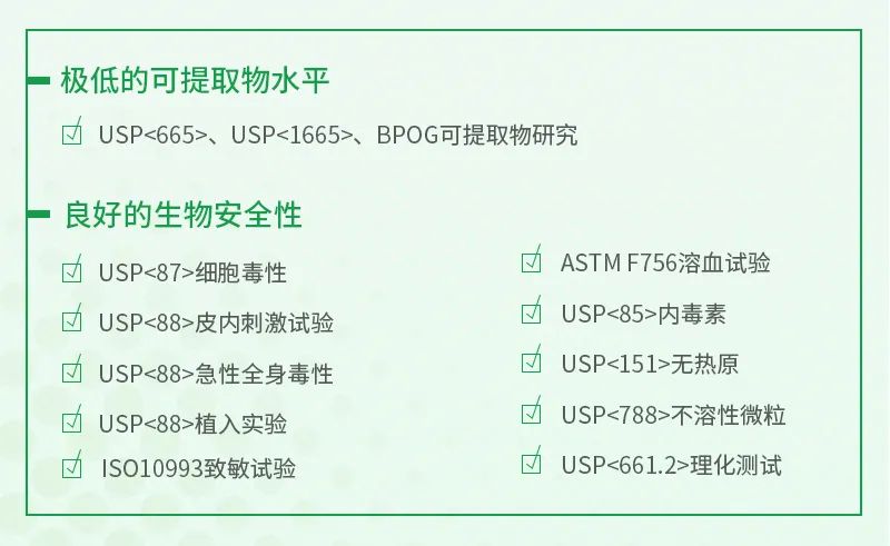 ◆ 成品經(jīng)權(quán)威第三方檢測(cè),具有極低的可提取物水平和良好的生物安全性