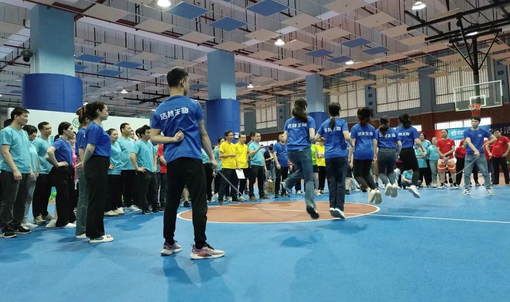 在團體跳繩比賽中,各隊成員緊密配合,搖繩和跳繩的隊員們各司其職,默契十足。他們隨著繩子搖動的節(jié)奏一次次跳動,每一次成功的跳躍都離不開隊員們的共同努力。比賽現(xiàn)場充滿了歡聲笑語和加油吶喊,潔特生物每一位員工都沉浸在團隊協(xié)作的歡樂氛圍中。